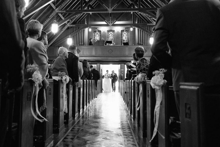 After arriving at their reception venue by boat, these two celebrated their marriage with friends, family, and a miniature cannon.